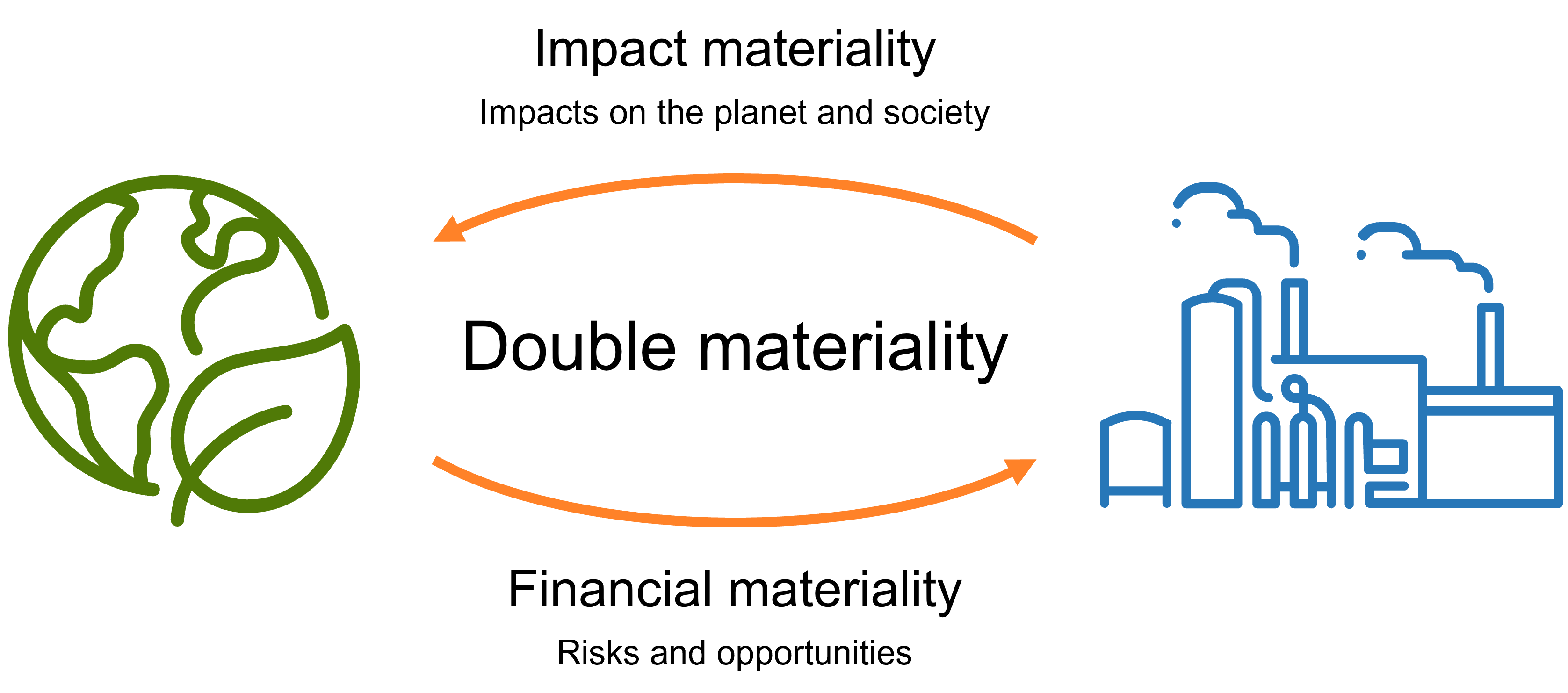 The concept of double materiality means that we must consider the relevance of a sustainability matter from two perspectives, impact materiality and financial materiality. Impact materiality captures how the company impacts the planet and society. Financial materiality capture how the company is impacted by the planet and society.